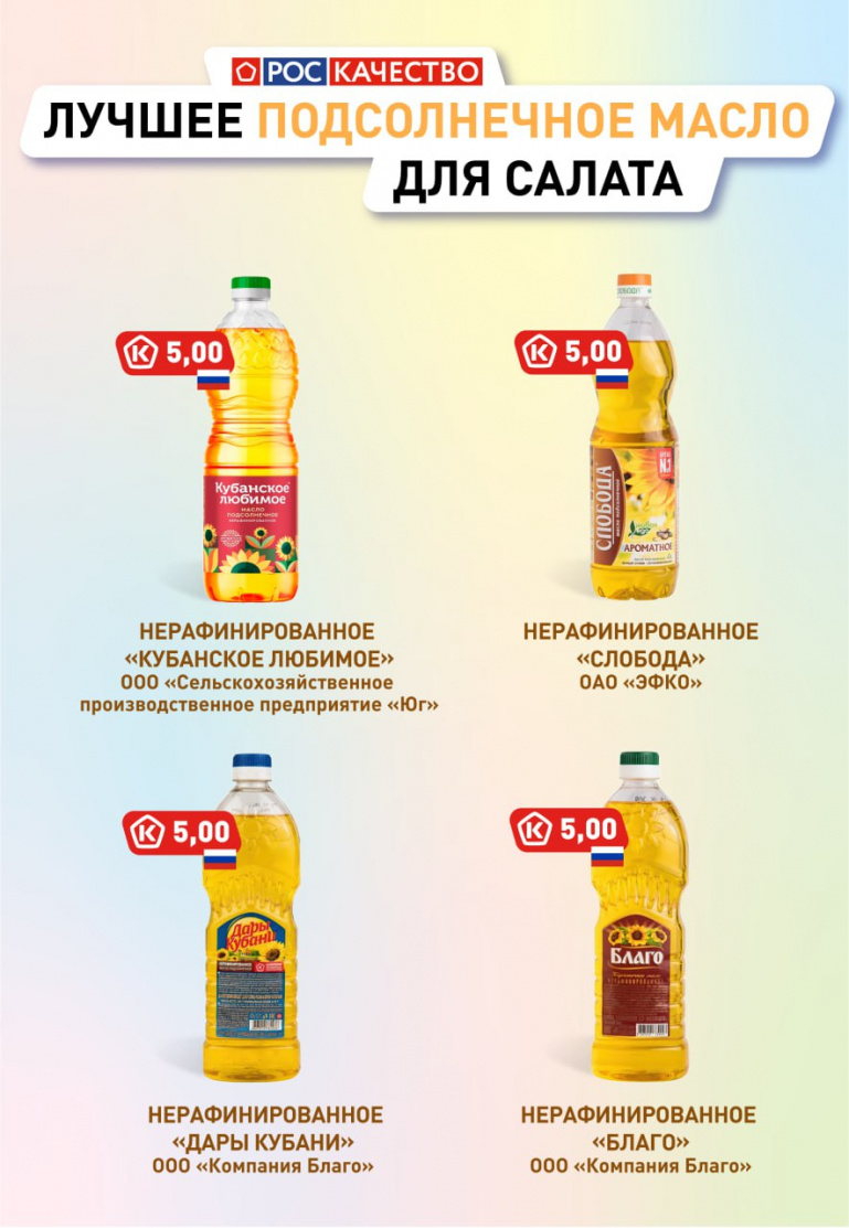 Кроме того, в 2020 году Роскачество исследовало нерафинированное подсолнечное масло и выбрало лучшие марки.