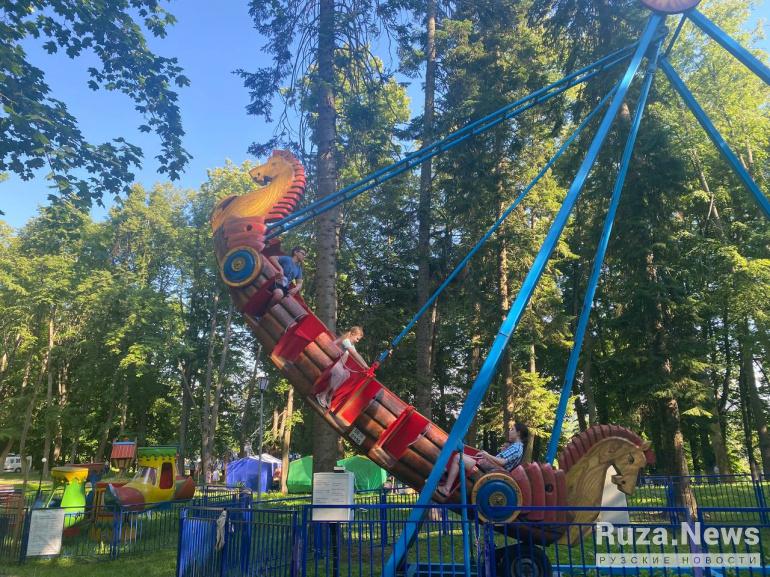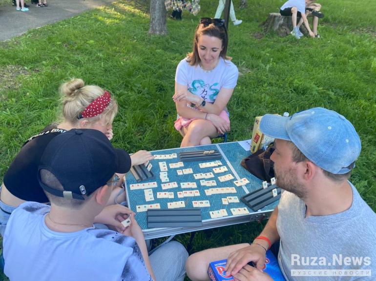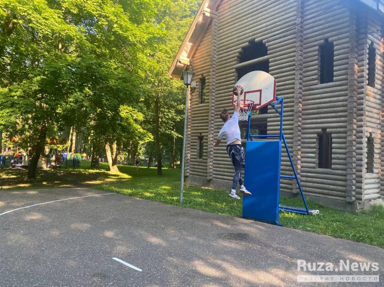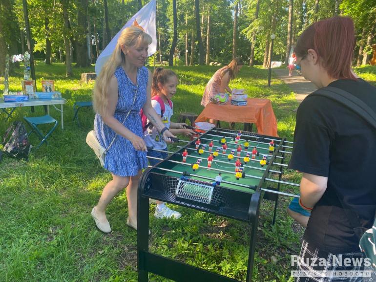 Ещё в парке организовали бесплатные развлечения: настольный футбол, настольные игры, эстафеты и другое. А для любителей активного отдыха организовали баскетбольную зону.