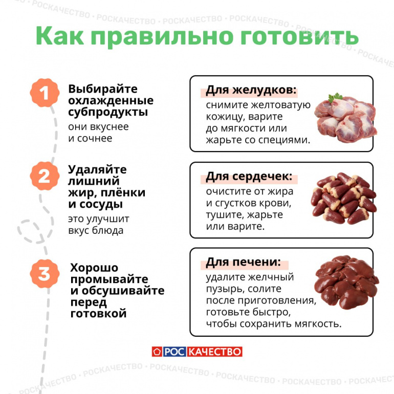 Детям субпродукты можно давать после года и только после консультации с педиатром. Готовить их лучше щадящими способами — варить, тушить или готовить на пару. Перед приготовлением продукты нужно тщательно очистить, промыть и обсушить.