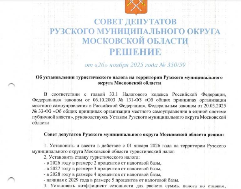 В Рузском округе с 1 января 2026 года введут туристический налог. Соответствующее решение приняли депутаты муниципального округа.