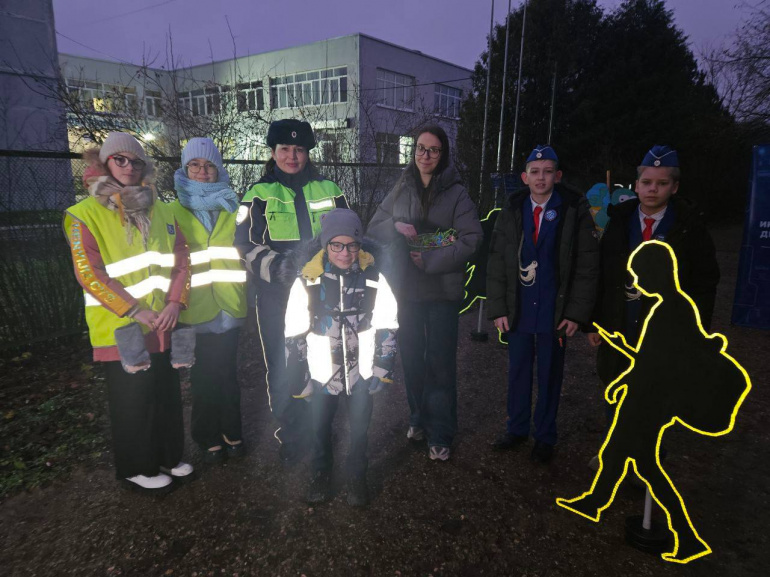 — Подобно тому, как наша подсвеченная локация притягивает взгляды школьников, спешащих на занятия, так и наличие световозвращающих элементов (СВЭ) гарантированно привлечёт внимание водителей именно в тот критический момент, когда это жизненно необходимо, — пояснила инспектор местного отдела Госавтоинспекции.