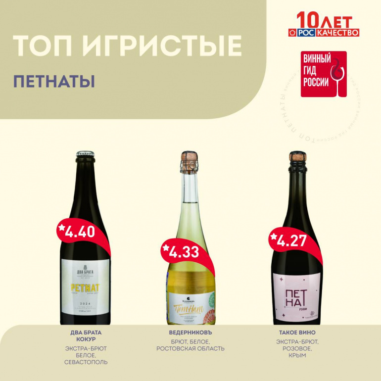 Перед Новым годом эксперты Роскачества представили обновлённые результаты масштабного исследования российских игристых вин. Особое внимание в этом году уделили категории «петнатов» — необычных вин, которые пока не закреплены в отраслевом законодательстве, но уже заняли своё место на полках.