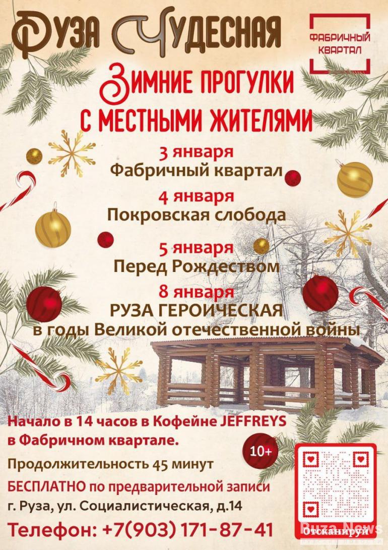 — Культурный проект «Руза Чудесная» открывает сезон зимних прогулок по нашему прекрасному городу! Это не просто экскурсии — это душевные встречи-путешествия, где каждый найдёт что-то особенное для себя, — написал в своём Telegram-канале глава округа Александр Горбылёв.