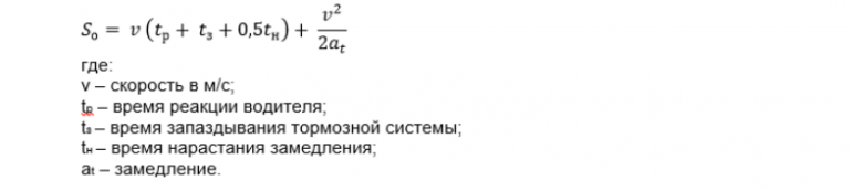 И только тогда водитель второго автомобиля понимает, что первый начал тормозить. То есть время реакции второго водителя начинается в момент, когда начинается время запаздывания тормозов первого автомобиля. Можно подсчитать, какой будет безопасная дистанция: