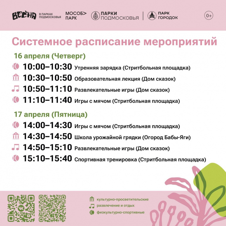 Зарядка и игры с мячом: рузский парк «Городок» опубликовал афишу развлечений на 16 и 17 апреля