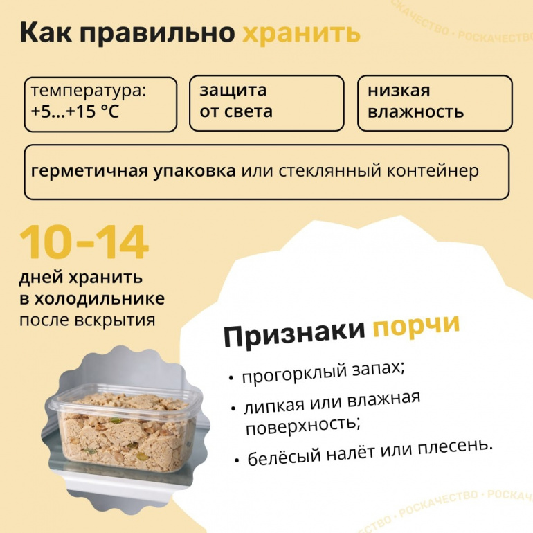 — Халву нужно хранить при температуре +5…+15 градусов в герметичной упаковке или стеклянном контейнере, — рассказали партнёру нашего издания, сайту Pchela.news, специалисты.