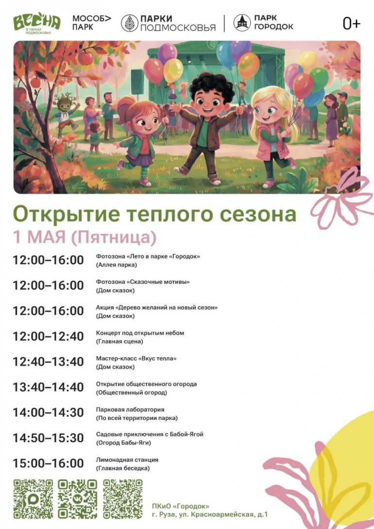 В первый день самого цветущего и яркого месяца весны, 1 мая, в рузском парке «Городок» состоится большой праздник в честь открытия тёплого сезона. Гостей угостят вкусным лимонадом и устроят концерт под открытым небом. Какие ещё развлечения подготовили организаторы, читайте ниже.